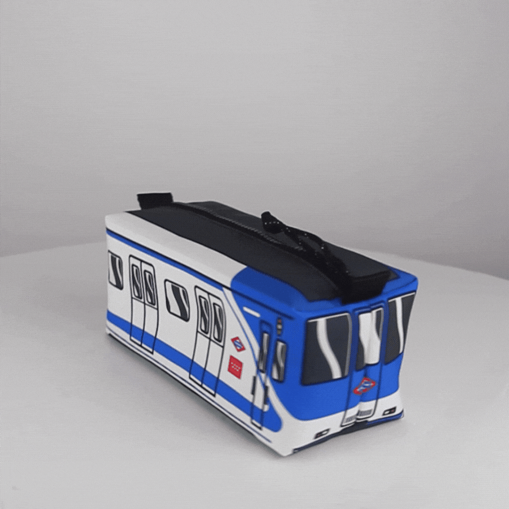 3D printed case with Metro Madrid 5000 series design and rectangular shape.